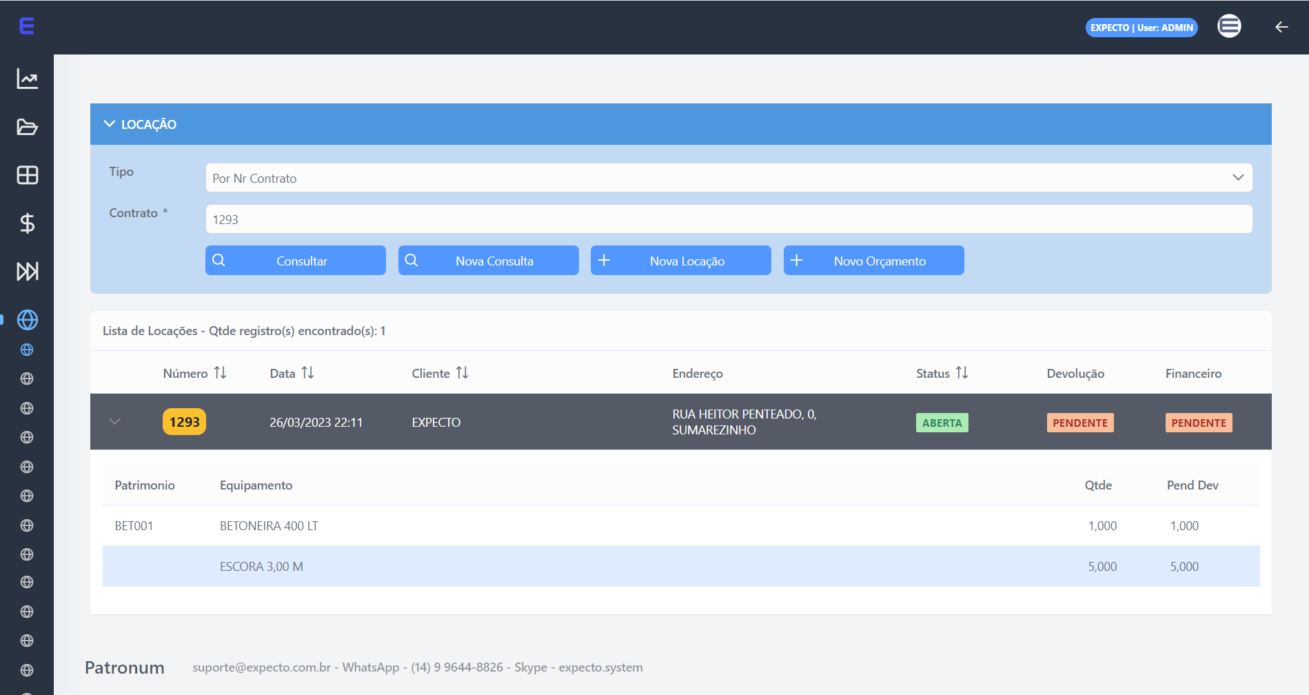 Solicite uma demonstração gratuitaO Expecto ERP foi projetado e desenvolvido para atender as locadoras de equipamentos de pequeno, médio e grande porte, oferecendo produtividade, organização, agilidade e alta performance nos resultados. Com o sistema de locação de equipamentos a sua locadora terá o controle total de aluguel ideal que você precisa contendo um ótimo gestor na sua administração empresarial.
